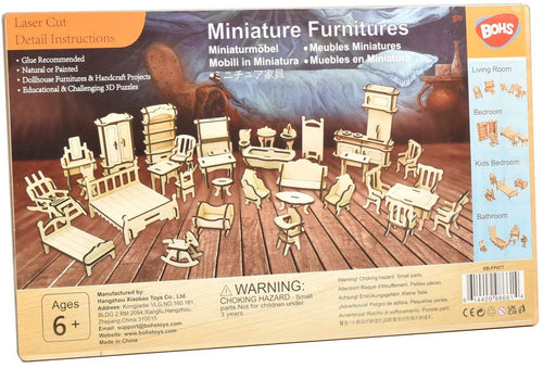 BOHS 1SET=34PCS Dollhouse Furnitures -Wooden 3D Puzzle - Scale Miniature Models Doll House DIY Accessorie